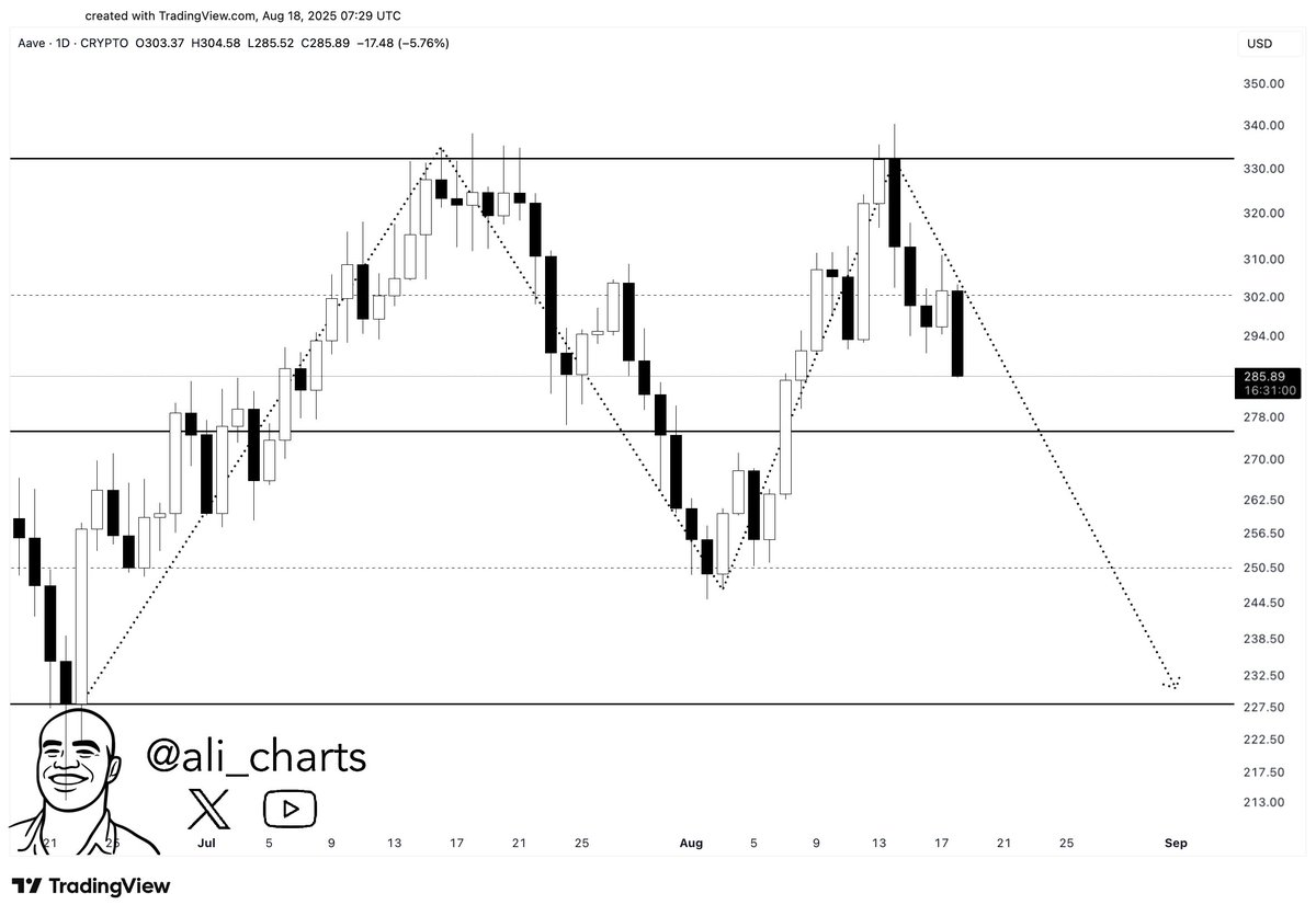 Ali Martinez yukarıdaki AAVE Coin grafiğini paylaşarak burada M formasyonu oluştuğundan bahsetti. Hedef fiyat için 230 dolara işaret eden Martinez yatırımcıların cazip seviyeden alım yapabileceğini ima ediyor. İlk destek kaybedilirse artan short pozisyonlar testi hızlandırabilir.