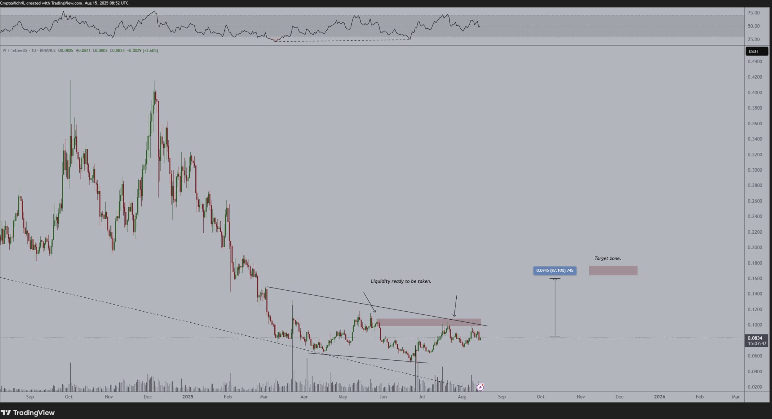 W Coin yeni ve ilgi çeken bir kripto para. Aynı zamanda Poppe’nin favori altcoin grubu içinde de yer alıyor. Analist yaklaşık 1 saat önce yukarıdaki grafiği paylaşarak güncel değerlendirmesini yazdı.