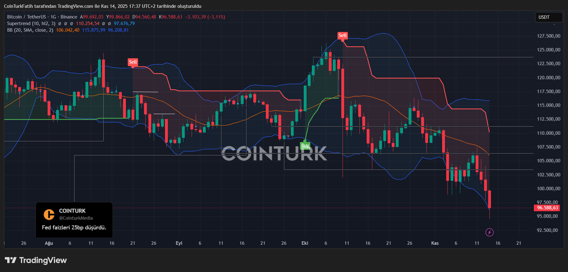 Ancak kripto paraların diğer birçok piyasadan farklı olan yönü sürekli aktif kalması ve yaklaşan gelişmeleri önceden fiyatlama eğilimi. Bu sebeple kimi zaman altın kimi zaman borsalar pozitif veya negatif korelasyon paylaşabiliyor. Bir süredir devam eden ve bu hafta şiddetlenen negatifliğin sebebiyse daha önce fiyatlanan yıllık 75bp faiz indirim rotasından çıkılmasıydı. Ve elbette Yüksek Mahkeme tarafından muhtemelen Trump aleyhine verilecek gümrük vergisi kararı da var.