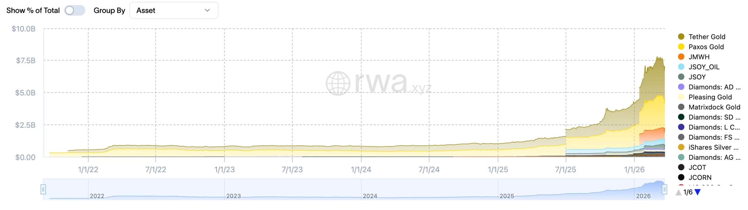 Piyasada şu anda çok sayıda tokenleştirilmiş dijital altın bulunuyor. 185 milyar dolarlık piyasa değeriyle uzun yıllardır stabilcoin dünyasında 1 numara olan Tether’in, resmi belgelerine göre XAUT yani altın ürünü, her bir token için en az bir ons fiziksel altın rezerviyle desteklenen dijital bir varlık yapısı sunuyor. Bu da kullanıcıya, fiziki altının değerine bağlı kalırken dijital piyasanın işlem kolaylığından yararlanma imkânı veriyor. RWA sitesinden son grafiklere bakıldığında 7 milyar doların üzerinde bir tokenleştirilmiş dijital altın piyasaya sürülmüş durumda. Bu miktarın %50’sinden fazlası ise Ethereum ağında yer alıyor, onu XRP Ledger ve Polygon ağları takip ediyor.