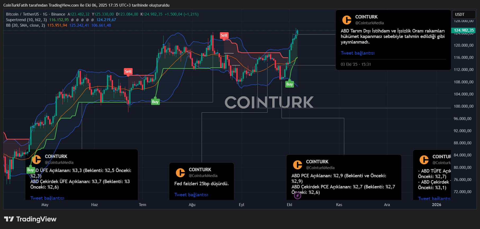 BTC 125 bin doların üzerinde ve ETH 4.700 doları geri almaya çalışıyor. ABD piyasaları açıldı ve halen hükümet kapanması sona ermiş değil. Hafta sonu Bitcoin’e artan talebin bugünkü ETF girişlerini fazlasıyla desteklemesi bekliyor. Yeni hafta tam anlamıyla rekor günü olarak başladı. Birçok analist BTC için 128.000-130.000 dolar bandında yeni zirve bekliyor.