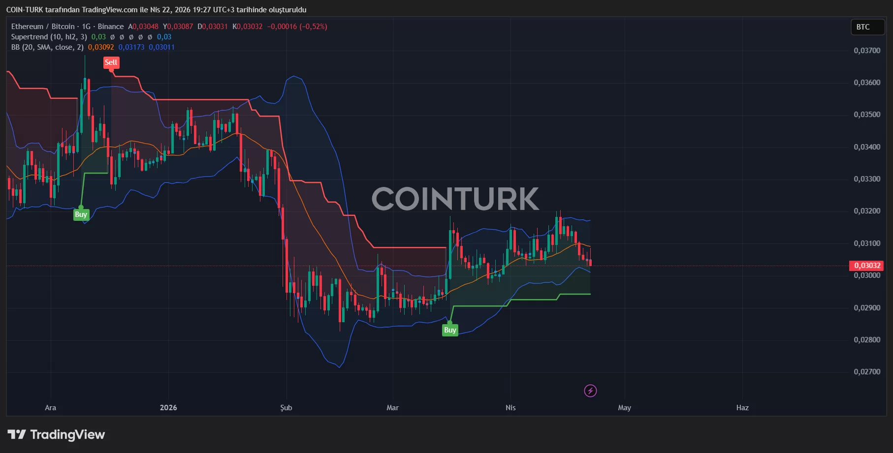 ETHBTC paritesinde son 1 ayın en düşük seviyeleri test ediliyor. BTC kadar güçlü hareket edemeyen ETH geride kaldı ve artık buradan toparlanmalı. Buradaki makul senaryo Cuma gününe kadar BTC yükseliş hızını keserse ETH ona yetişmek isterken 0.03089BTC seviyesine ulaşabilir ardından hedef 0.03135BTC olur. Bu durumda altcoinler de çift haneli kazançlar elde eder.