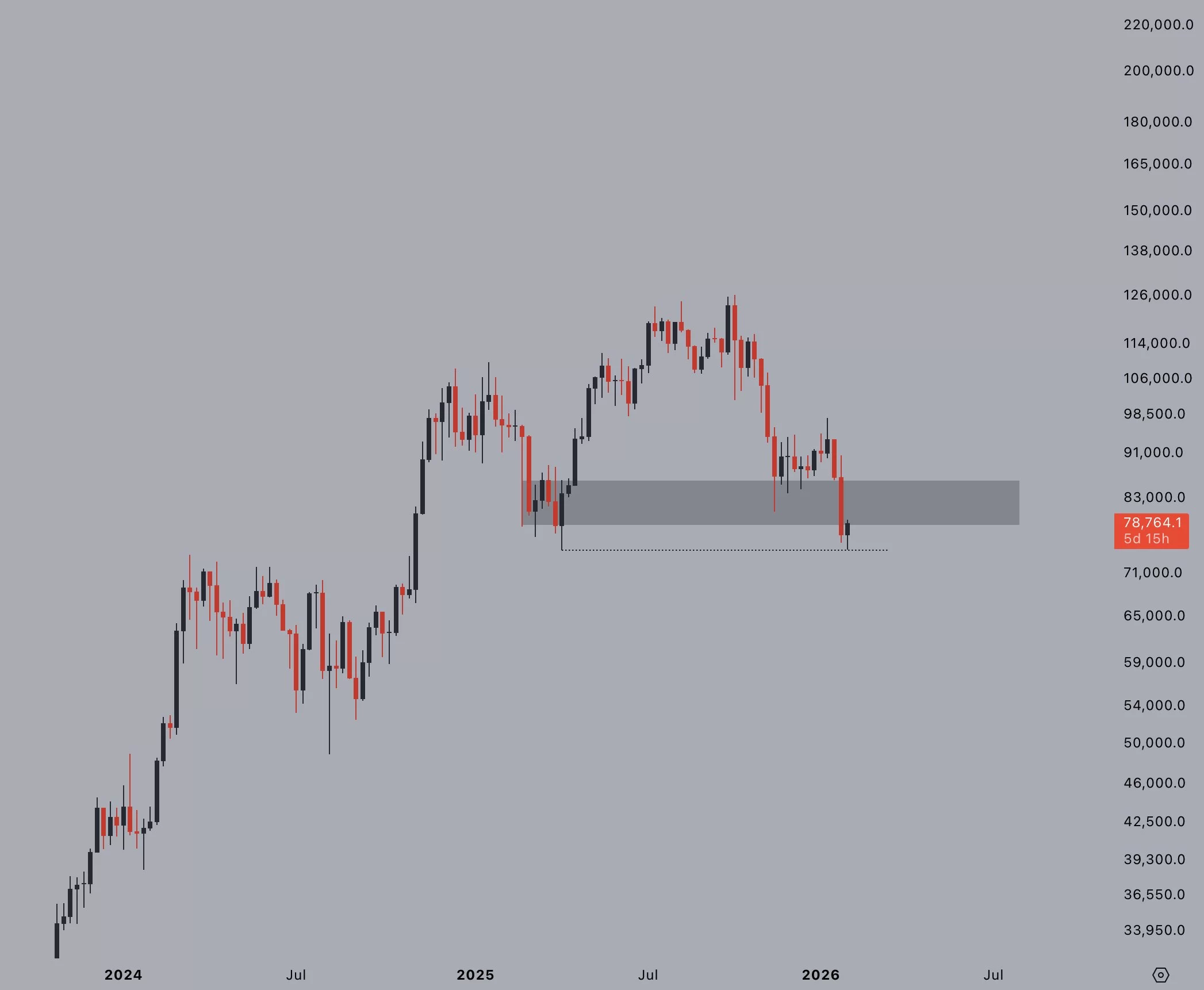 “BTC haftalık destek seviyesinin altında kapandı, ancak şu ana kadar 2025’in en düşük seviyesini aşmadı veya kaybetmedi.