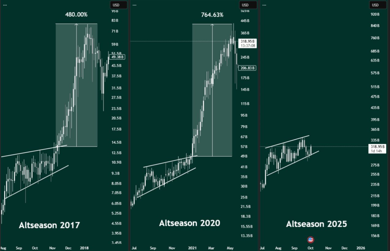 Altcoin boğası geldi, geliyor sesleri yeniden yükseliyor. Faiz indirimlerine dair iyimserlik artarken bu şaşırtıcı değil. Tarihsel veriler Ekim ayında daha fazla yükseliş göreceğimizi söylüyor ve Gordon, Quinten gibi analistler de “artık başladı” şeklinde paylaşımlar yapıyor.