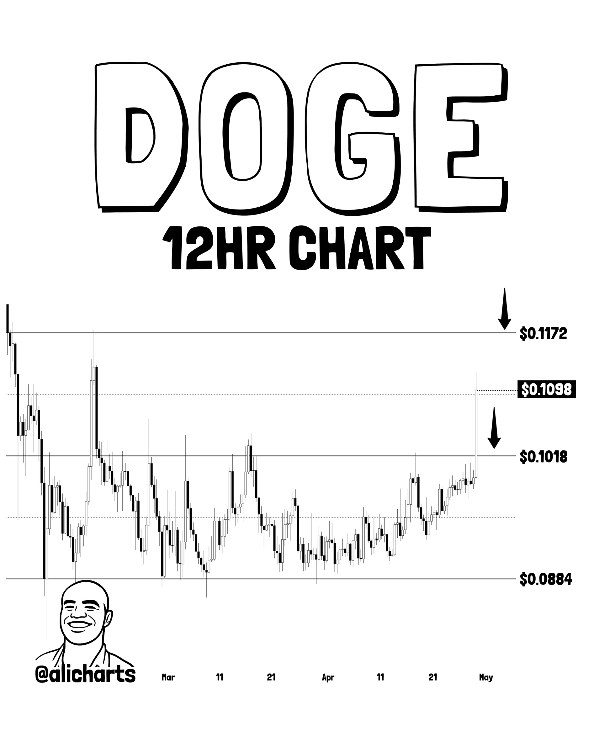 “Dogecoin (DOGE), beklendiği gibi 0,1018 doların üzerine çıktı ve şu anda kanalın tepesindeki 0,1172 dolarlık hedefe doğru ilerliyor.”