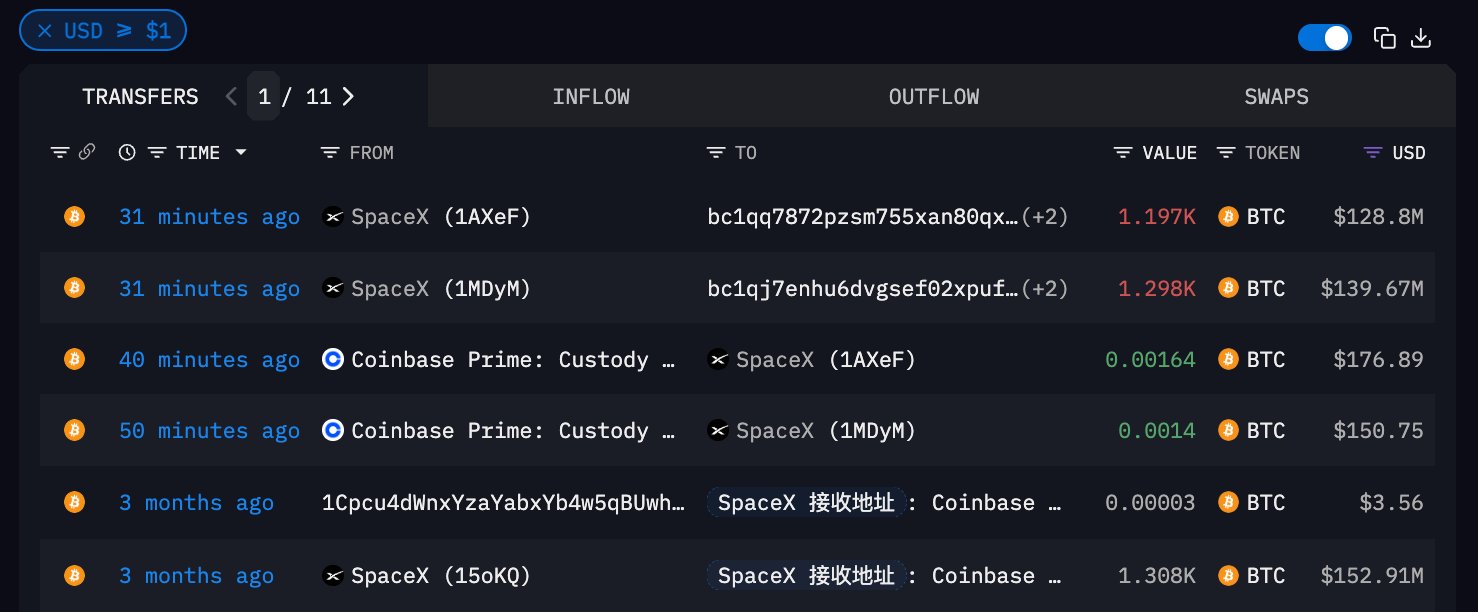 Elon Musk’ın uzay teknolojileri şirketi SpaceX, yaklaşık üç aylık sessizliğin ardından 268.5 milyon dolar değerinde 2.495 adet BTC transferi yaptı. Arkham Intelligence verilerine göre 21 Ekim’de gerçekleşen işlem, şirketin 24 Temmuz’dan bu yana gerçekleştirdiği ilk büyük Bitcoin