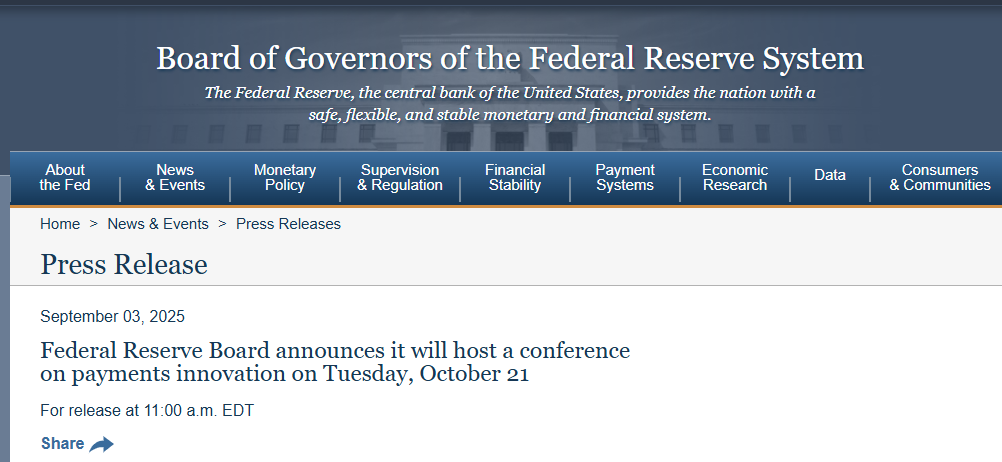 21 Ekim Salı günü Fed ödemelerde yenilik, inovasyon temalı bir konferans düzenleyecek. Burada ödeme sisteminde yapılacak daha fazla inovasyon, iyileştirme konuları ele alınarak konunun tarafları bir araya getirilecek.