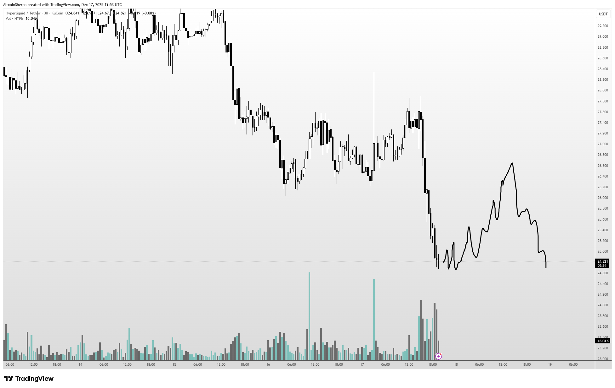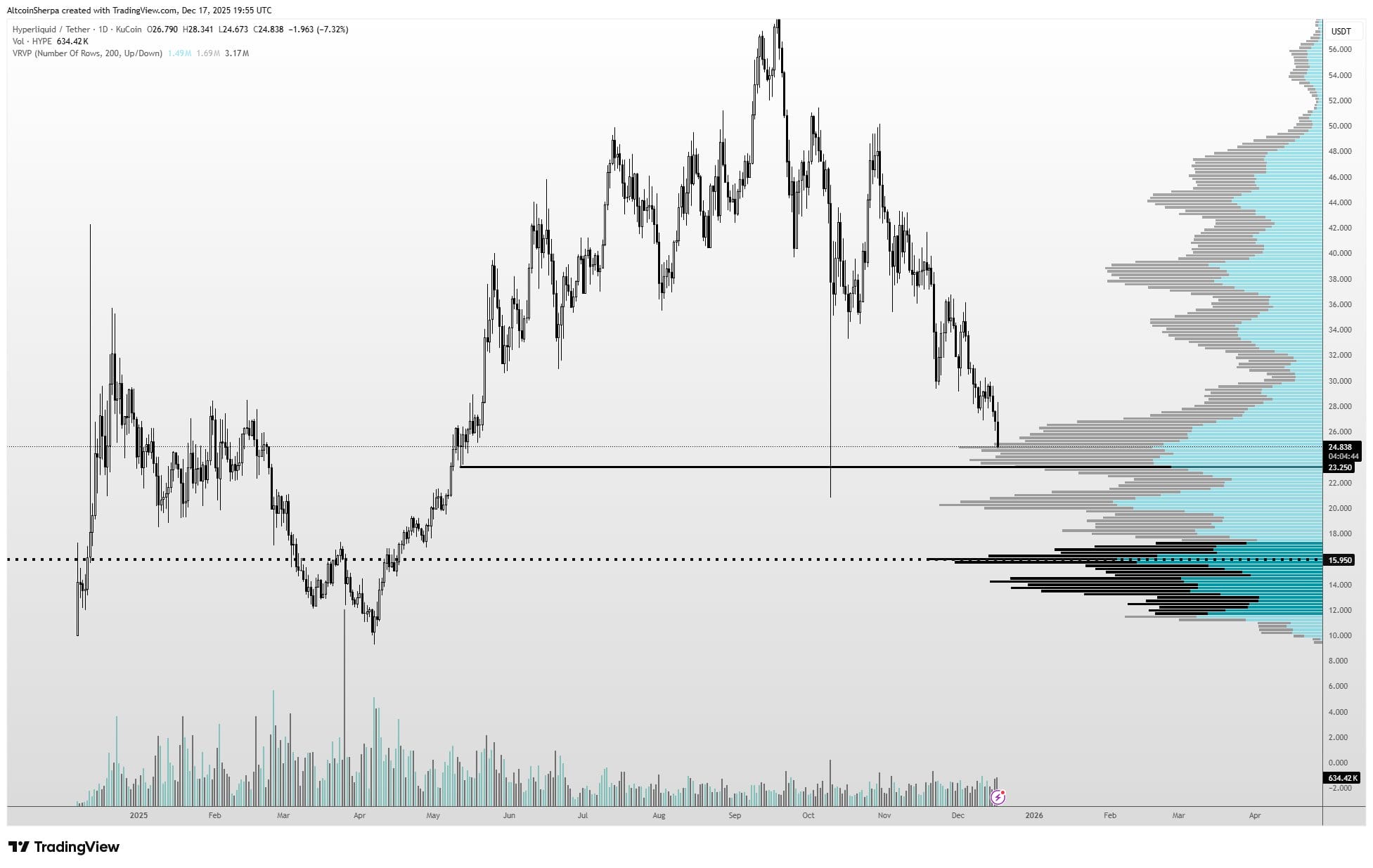 - İkinci Yol: 23-20 dolar civarında daha büyük bir dalgalanma. Bu bölgede çok sayıda likidasyon var ve bu seviyelere ulaşıp ulaşmayacağımızdan emin değilim, ancak piyasa yine de bu seviyeleri hedef almaya çalışabilir. HyperLiquid’i hala genel olarak en iyi kripto projesi ve satın almak istediğim bir proje olarak görüyorum.
