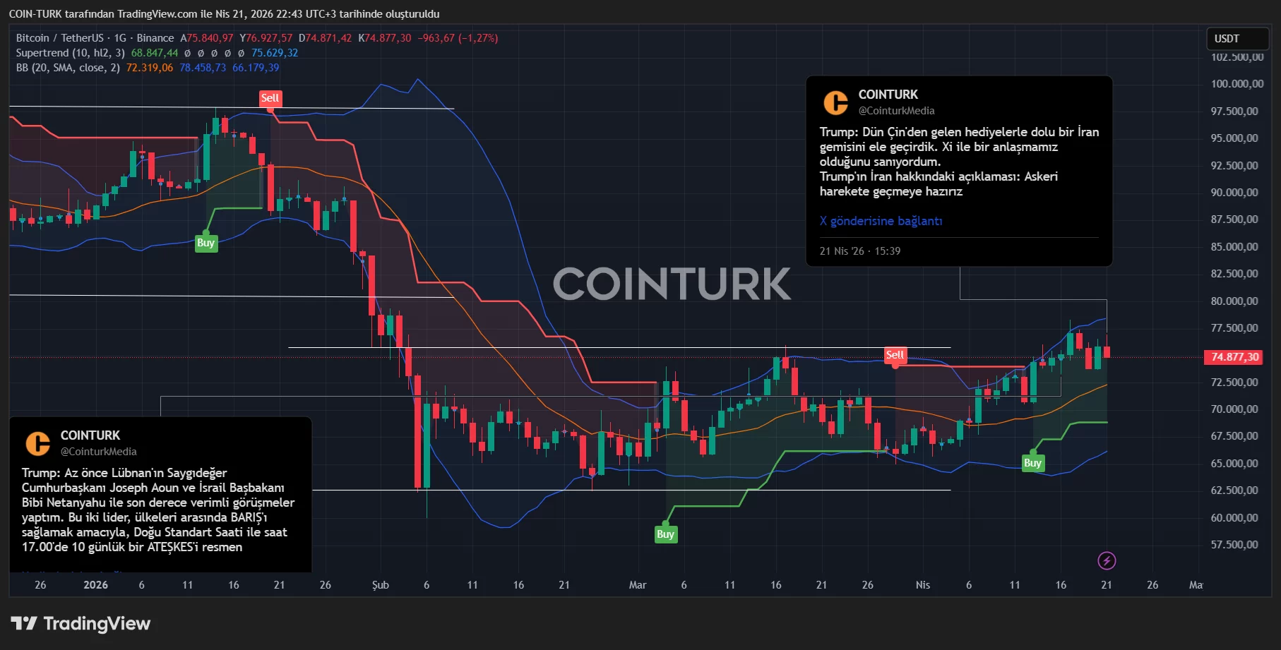 Pakistan ve bölge ülkelerinin çabasına rağmen görüşmeler gerçekleşmedi. AP biraz önce Vance’ın Pakistan gezisinin iptal olduğunu açıkladı. BTC yazı hazırlandığı sırada 75 bin doların altına inerek günlük dibini aramaya başladı.