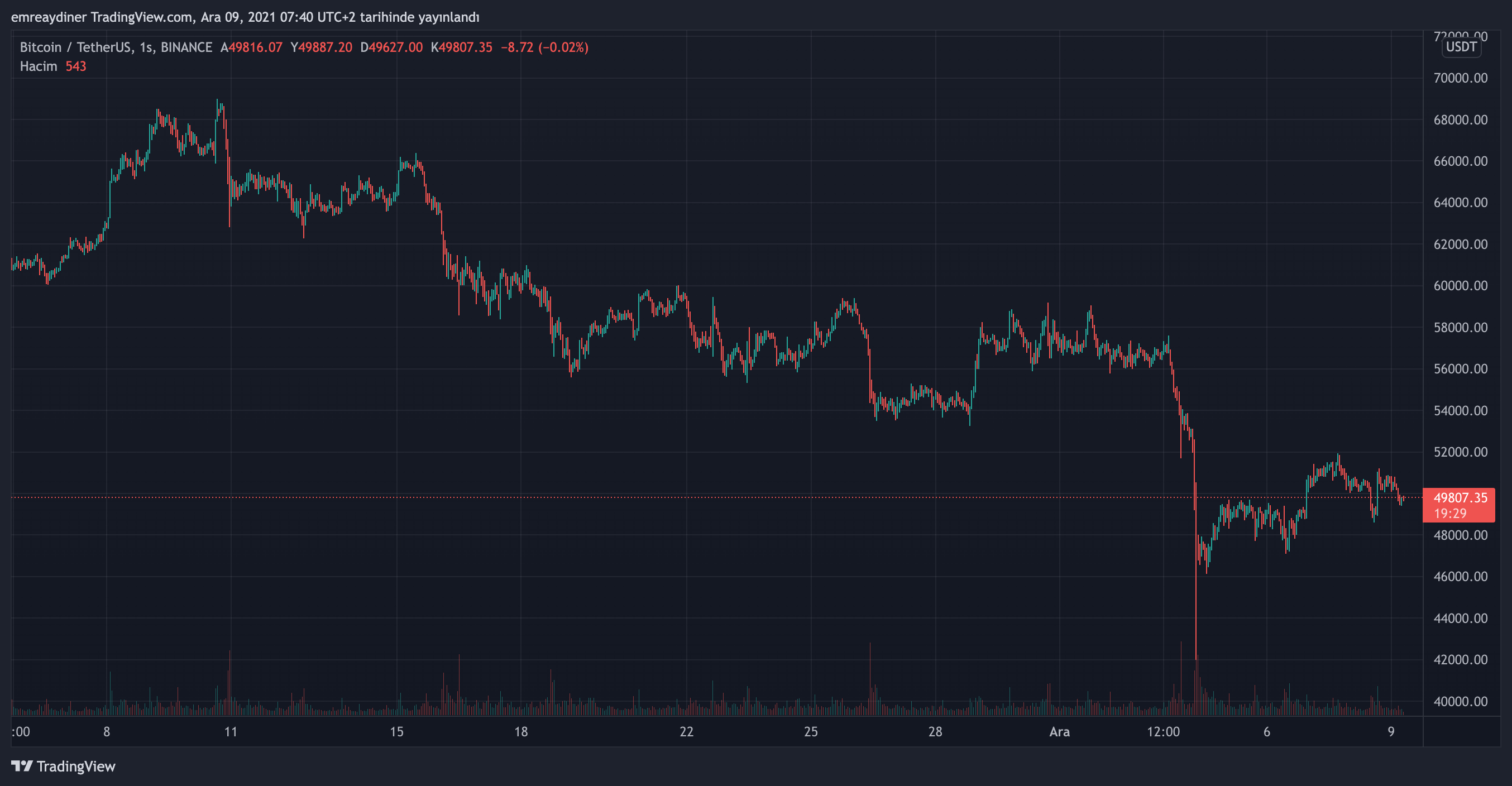 Ancak, BTC bu bölgede tutunamadı ve gün içerisinde yeniden 50.000 doların altına kadar geriledi.