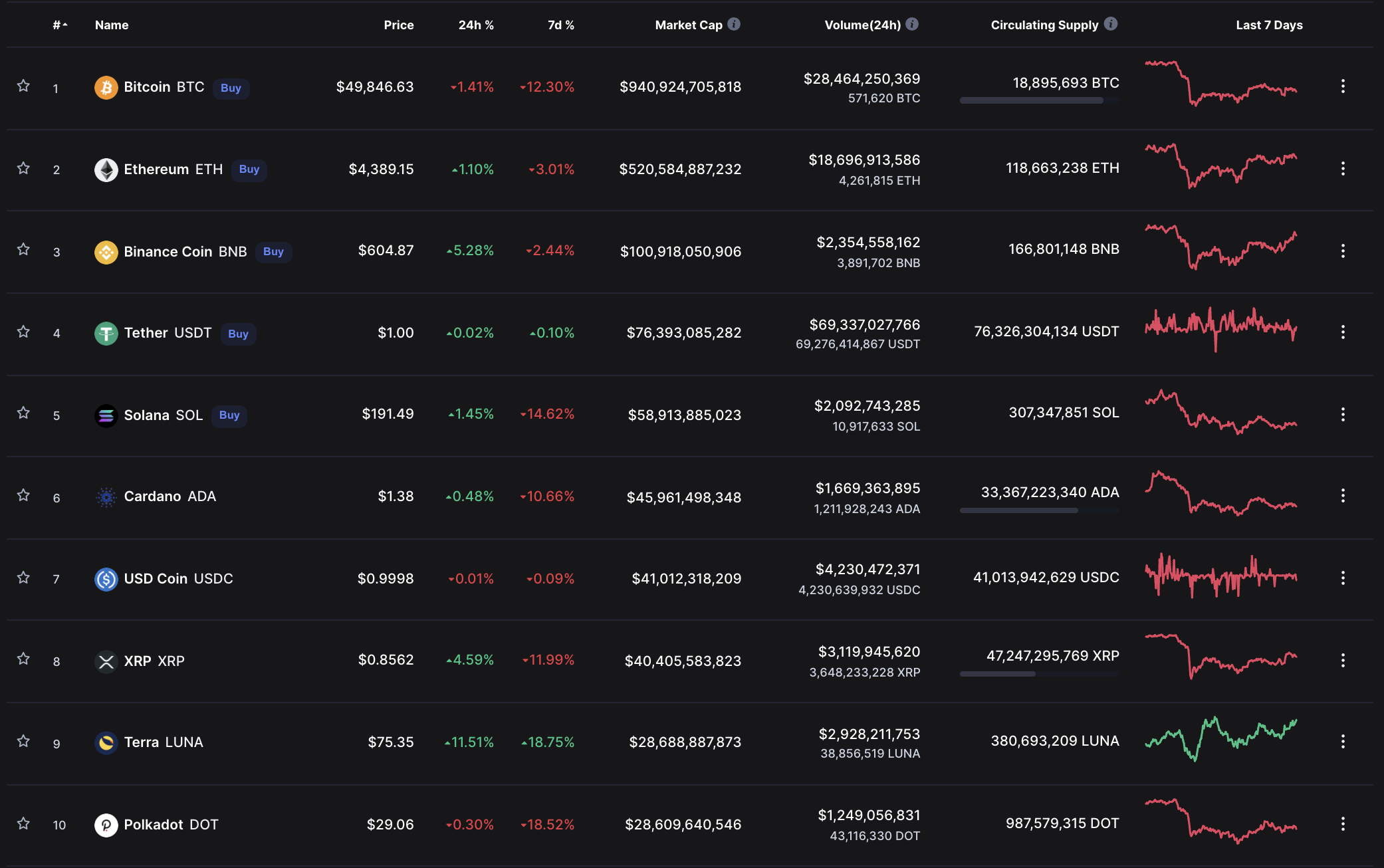 Cardano (ADA) +%0.15 1.38 Dolar, Ripple (XRP) +%4.58 0.85 Dolar, Terra (LUNA) +%12 75 Dolar, Polkadot (DOT) -%0.80 28.95 Dolar.