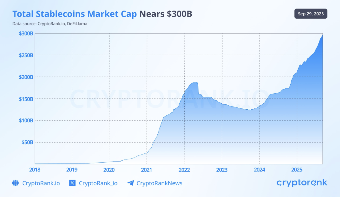 Toplam stablecoin piyasa değeri 300 milyar dolara yaklaşıyor. İkinci çeyrekteki 10.8 milyar dolar olarak kayda geçen net girişler üçüncü çeyrekte 45.6 milyar dolara sıçrayarak yüzde 300’ün üzerinde arttı.