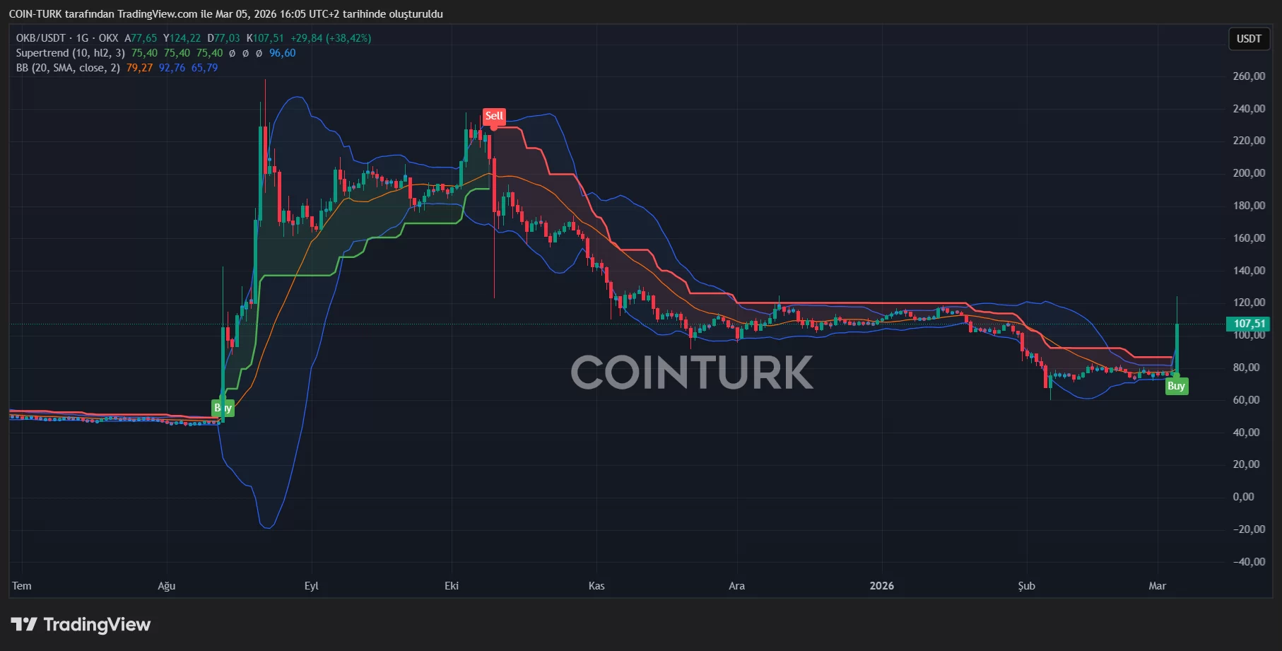 Şubat satışlarında 60 doların altına kadar gerileyen OKB Coin 100 doları 2025 Ağustos ayından bugüne destek olarak koruyordu. Şimdi ICE’nin yatırımıyla yeniden kilit bölgeyi geri aldığından 117 dolarlık direnç bölgesinin hedeflendiğini görebiliriz. 117-124 dolar üstü kapanışlar 157 dolarlık yükseliş tabanının geri alınmasına yardımcı olabilir. BTC’nin 70 bin doları koruduğu senaryoda haber akışının da etkisiyle OKB için bu rakamlar sürpriz olmaz.
