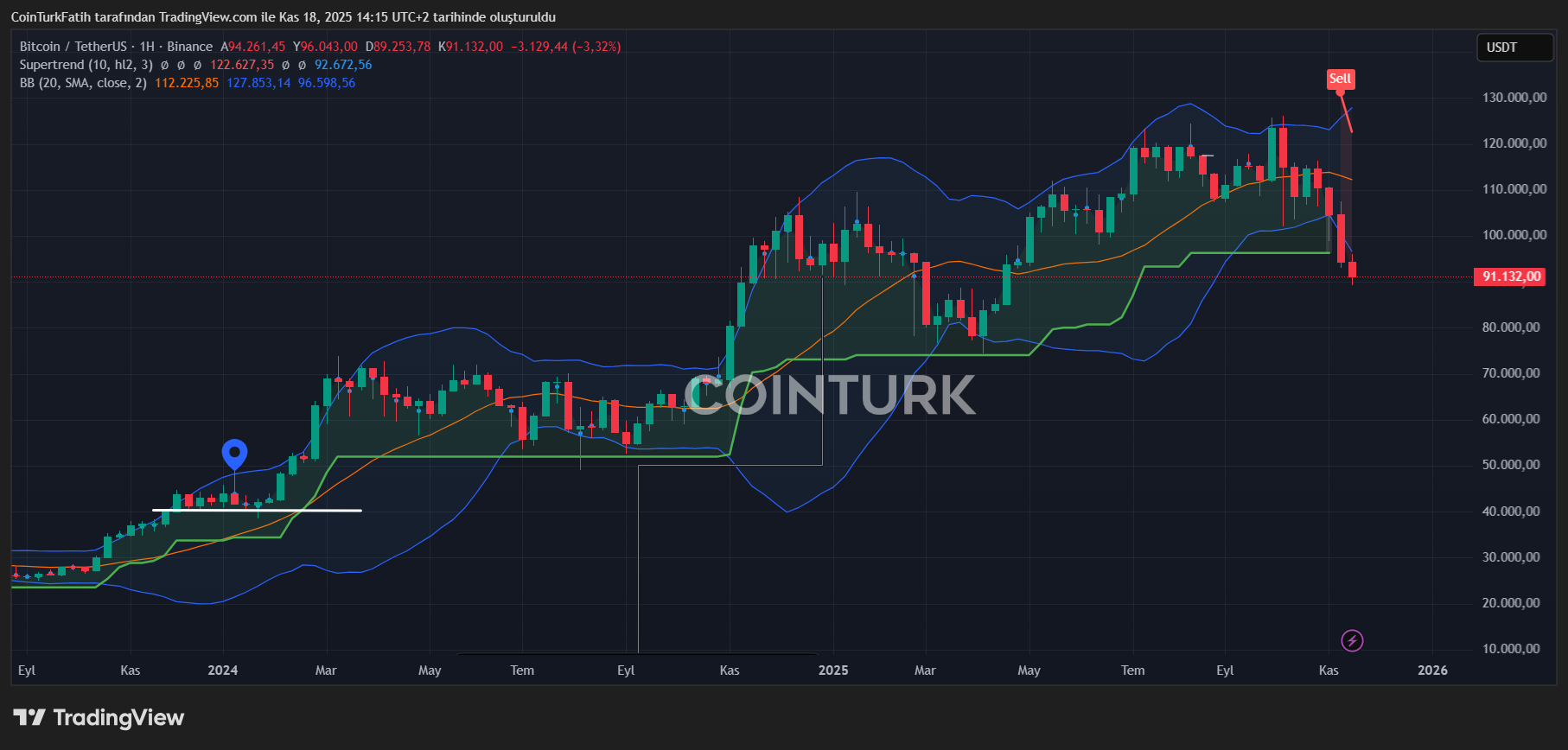 Bitcoin 89 bin doları test ettikten sonra yazı hazırlandığı sırada 91 bin doları korumak için mücadele ediyor. 4 haftalık düşüş serisi pek alışık olduğumuz bir şey değil ve artık buradan bir ara yükseliş de olsa dönüş görmeliyiz. Yükselişten emin olmak için 98 bin dolar üzerinde günlük kapanışlara ihtiyaç var ve yükseliş trendine geri dönüş 102.800 ve 107 bin dolar eşiklerinin geri kazanılmasıyla mümkün olacak.