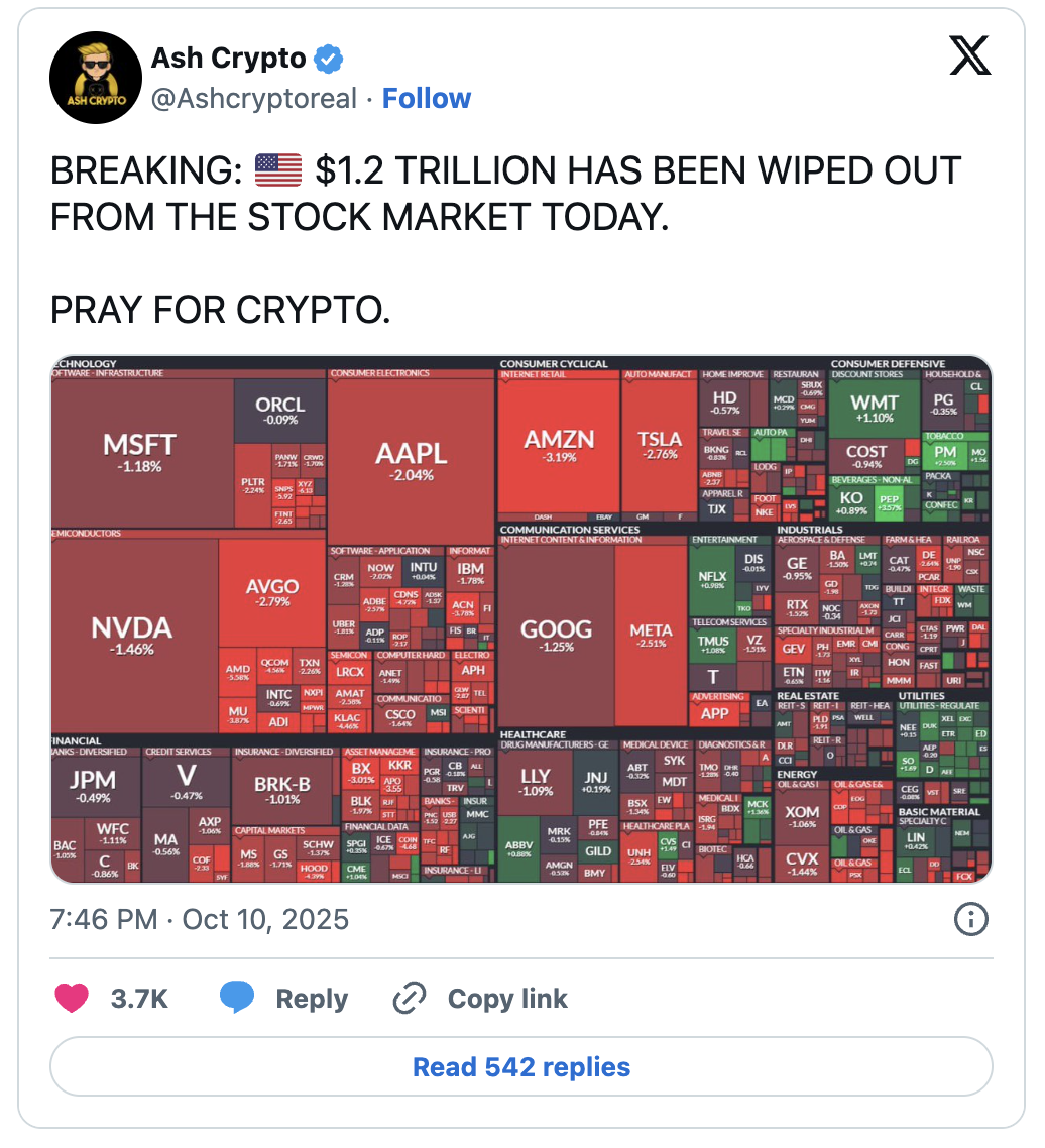 Trump’ın açıklamasının ardından hem S&P 500 endeksi yüzde 2,7 değer kaybetti hem de dijital varlık piyasasında benzeri görülmemiş bir tasfiye dalgası yaşandı. Coinglass verilerine göre son 24 saatte 19,1 milyar dolarlık pozisyon kapandı ve 1,6 milyon yatırımcı zarar yazdı. Bu, kripto tarihinde tek günde yaşanan en büyük altcoin tasfiyesi olarak kayıtlara geçti.
