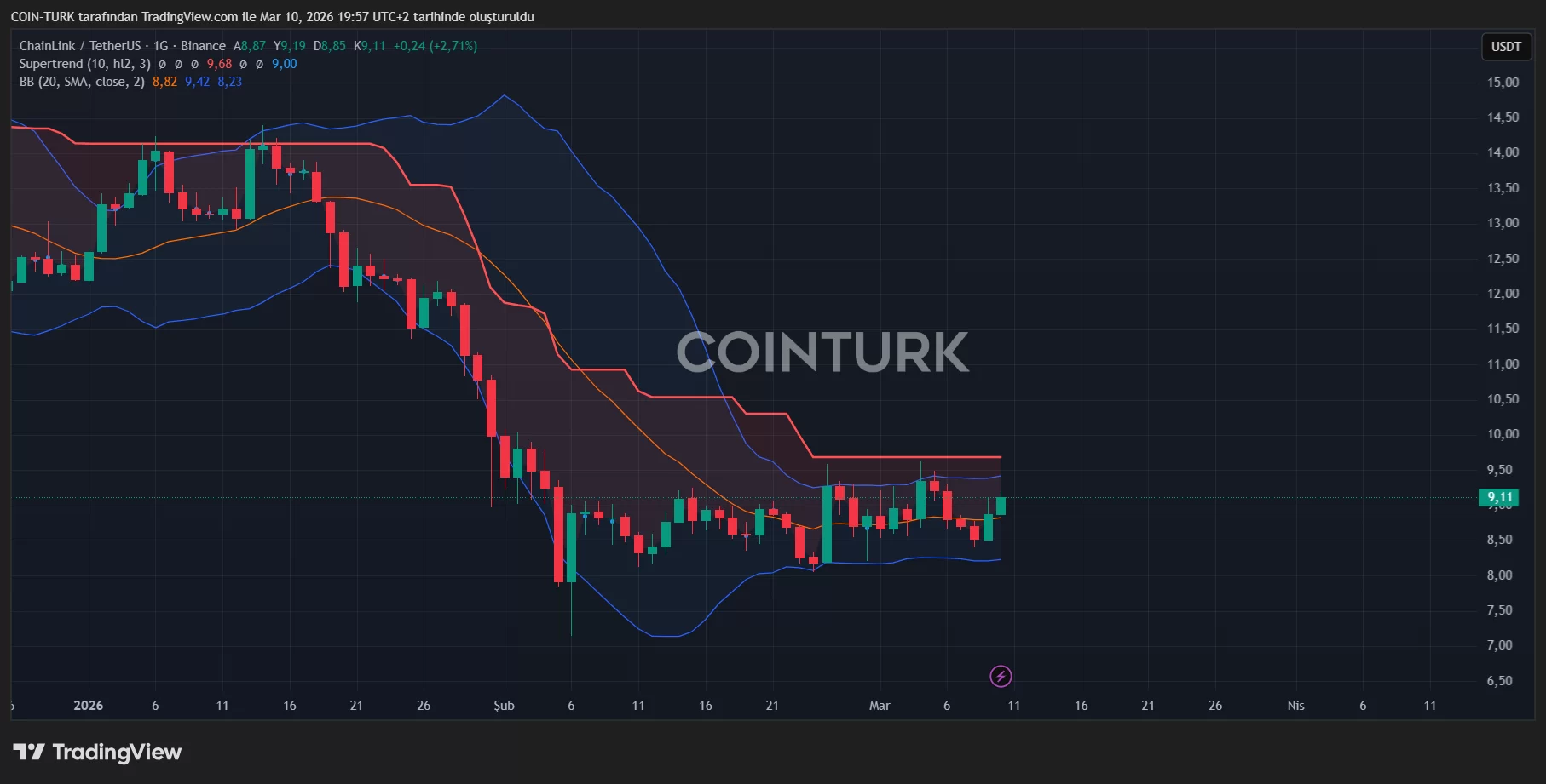 Ancak şimdilik LINK Coin 9,41 dolar üstü kapanışlarla 11.87 dolardaki yükseliş tabanını geri kazanmalı.