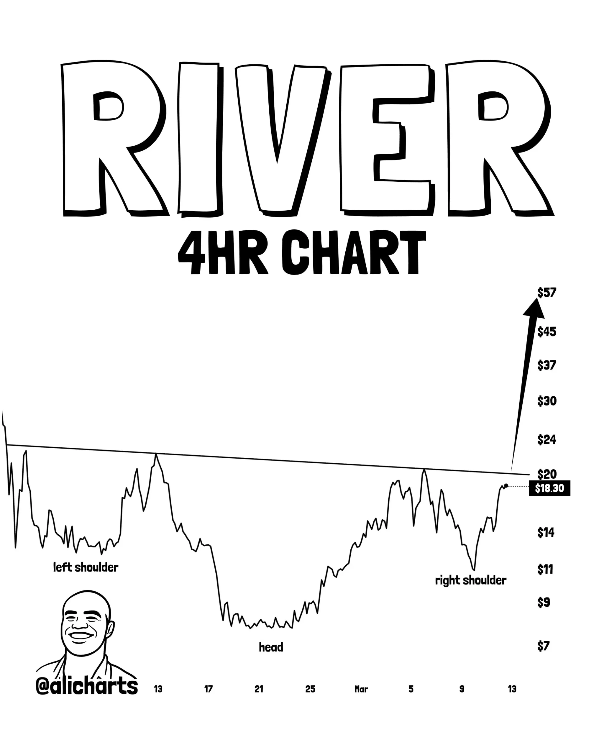 Ali Martinez kripto paralarda risk katlanarak artarken River Coin’e odaklanıyor. Ters baş ve omuz formasyonuna dikkat çeken analist 20 dolar üstü kapanışlar görmemiz halinde River Coin’in hızla 57 dolara sıçrayabileceğini düşünüyor. Eğer BTC 70 bin doları koruyamazsa daha derin diplere kapı aralayacağından River için de 57 dolar hayali suya düşebilir çünkü buradaki teknik kurulum kısa vadeli.