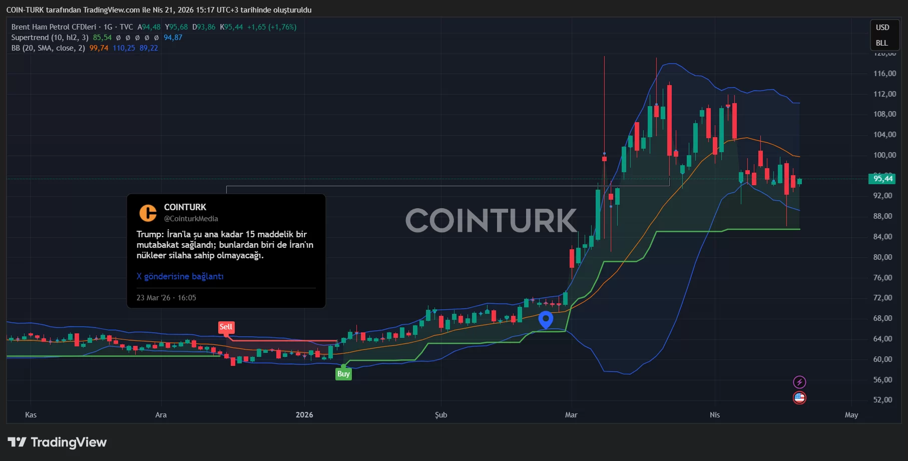 15:30’da Trump’ın açıklama yapması bekleniyor. Petrol artan riske tepki olarak bir miktar yükseldi.