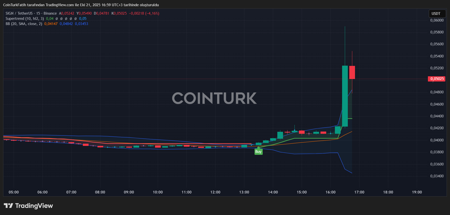 %43 artışla 0.0590 dolara ulaşan SIGN Coin 0,05 doların hemen altında alıcı bulmaya devam ediyor.