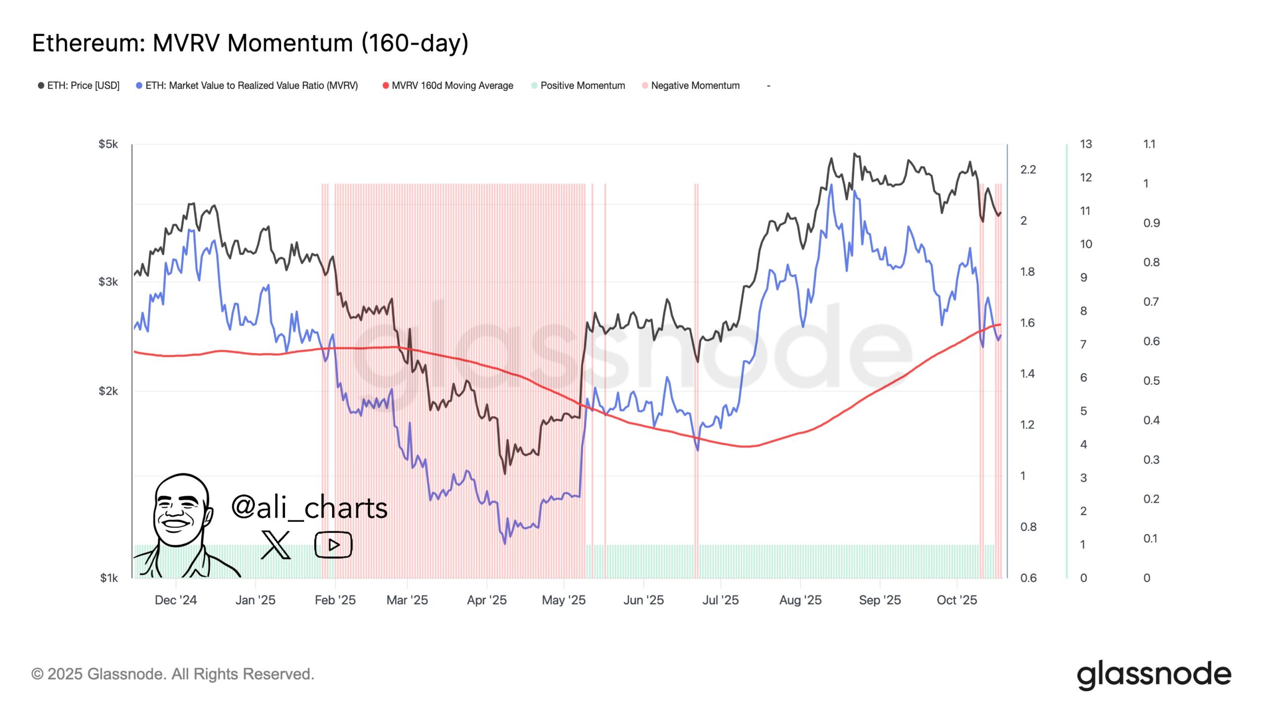 “MVRV Momentum en son ölüm çaprazı gösterdiğinde, Ethereum $ETH 3.300 dolardan 1.400 dolara düştü. Bu sinyal yine ortaya çıktı!”