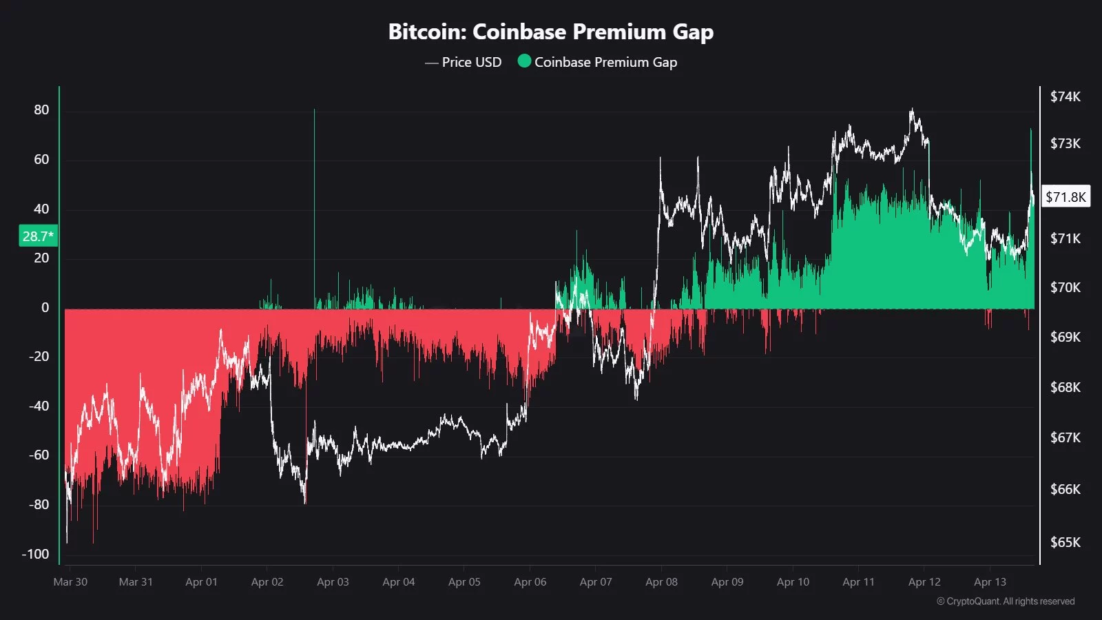 On-chain analist Maartunn Coinbase Premium’un tekrar yeşile dönmesinden övgüyle bahsediyor. Uzun süredir ABD yatırımcıları iştahsız olduğu için yükselişler kısa soluklu oluyordu ancak bu yükseliş diğerlerinden farklı olabilir.