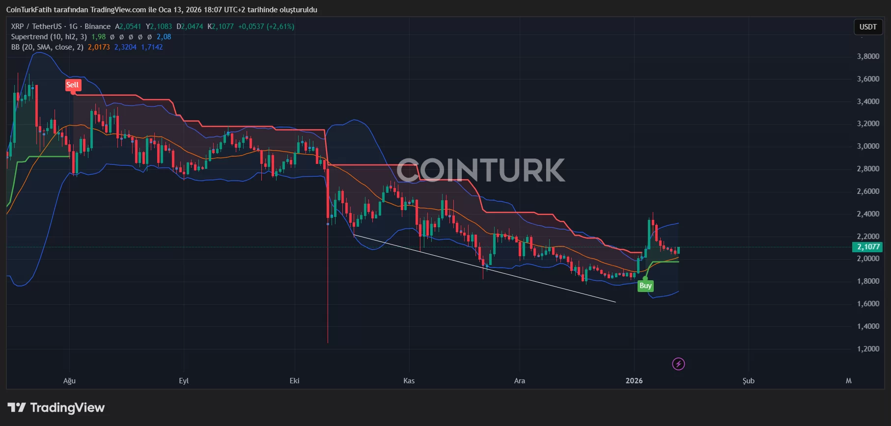 Burada da tıpkı DOGE cephesinde olduğu gibi son çeyreğin yıkıcı etkisi görülüyor. İstikrarlı daha derin diplerin ardından 2026 itibariyle bu ölüm sarmalını kırmaya çalışan XRP 2,08 dolar üzerinde haftalık kapanışlara ihtiyaç duyuyor.