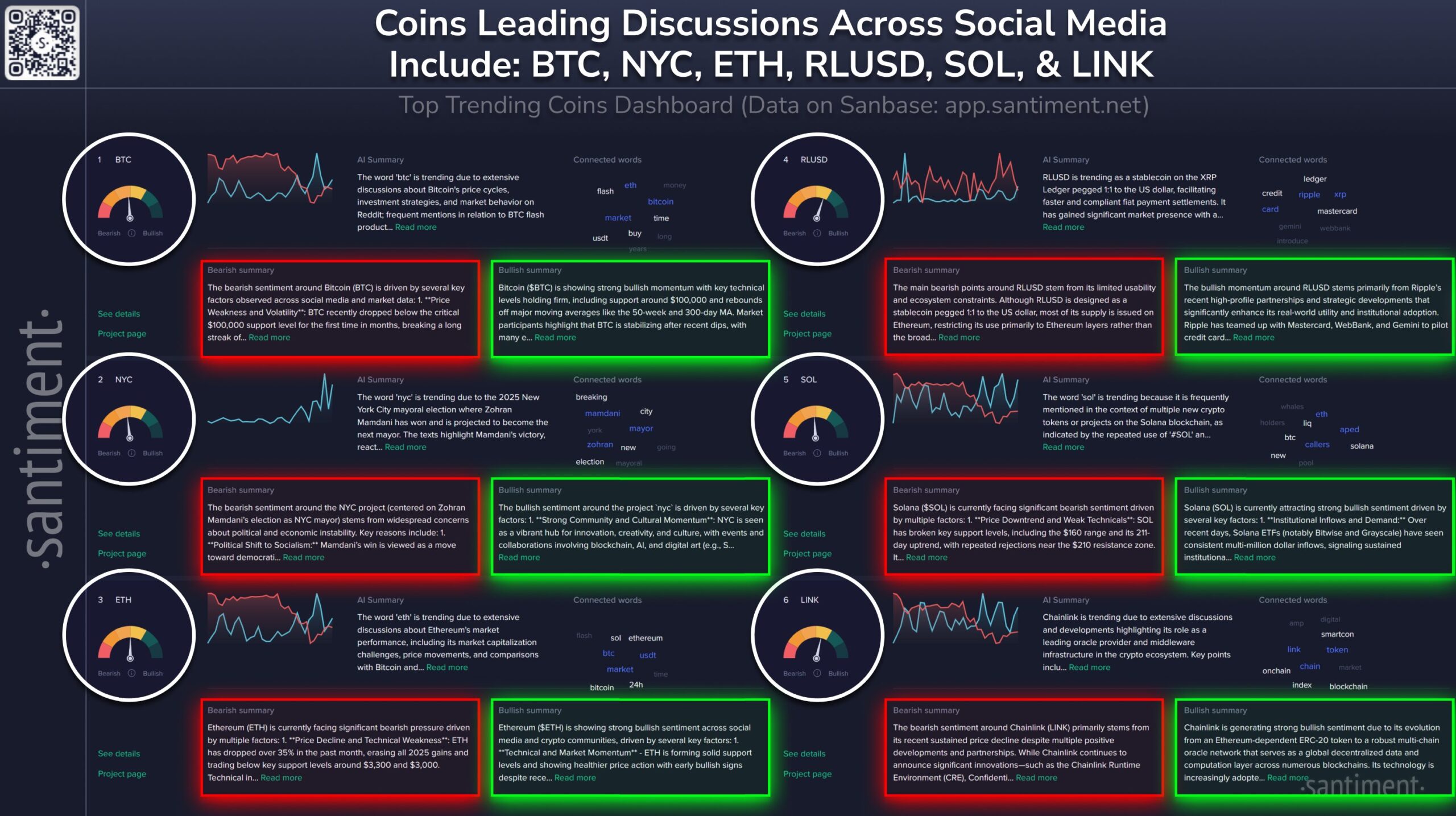 $2.06 USD (RLUSD) ve NewYorkCoin (NYC) öne çıktı. Analiz Reddit, Telegram ve X üzerindeki yüksek etkileşimleri temel alarak yatırımcı ilgisinin hangi kripto paralar üzerinde yoğunlaştığını yansıtıyor. Veriler kripto para piyasasında yatırımcı ilgisinin hem geleneksel hem de politik dinamiklerle şekillendiğini gösteriyor.